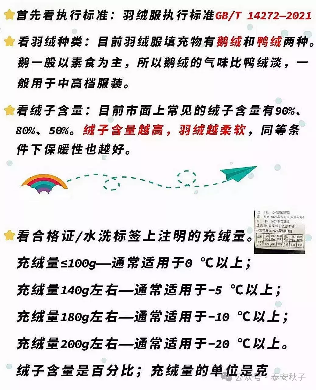 tip1、看吊牌3个数值,选出高质感羽绒服