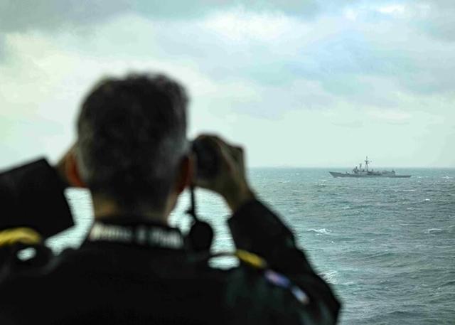 新西兰艨艟穿航台湾海峡时与台岛艨艟“片时交会”
