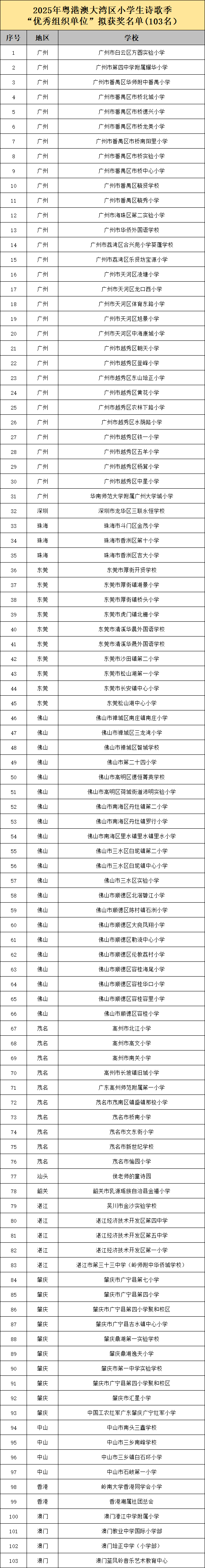 附:2025年粤港澳大湾区小学生诗歌季拟获奖公示名单